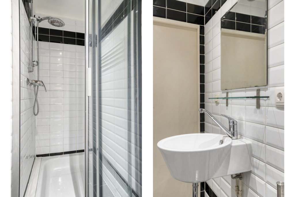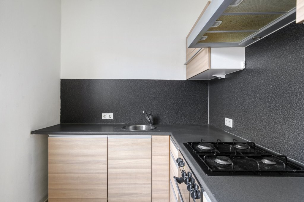 Deze lichte studio maakt deel uit van een kleinschalig complex met zes appartementen boven de winkels. De ruimte is praktisch ingedeeld, met een open woonkamer/slaapgedeelte, een open keuken met divers inbouwapparatuur en de wasmachineaansluiting, en een nette badkamer met douchecabine en wastafel.