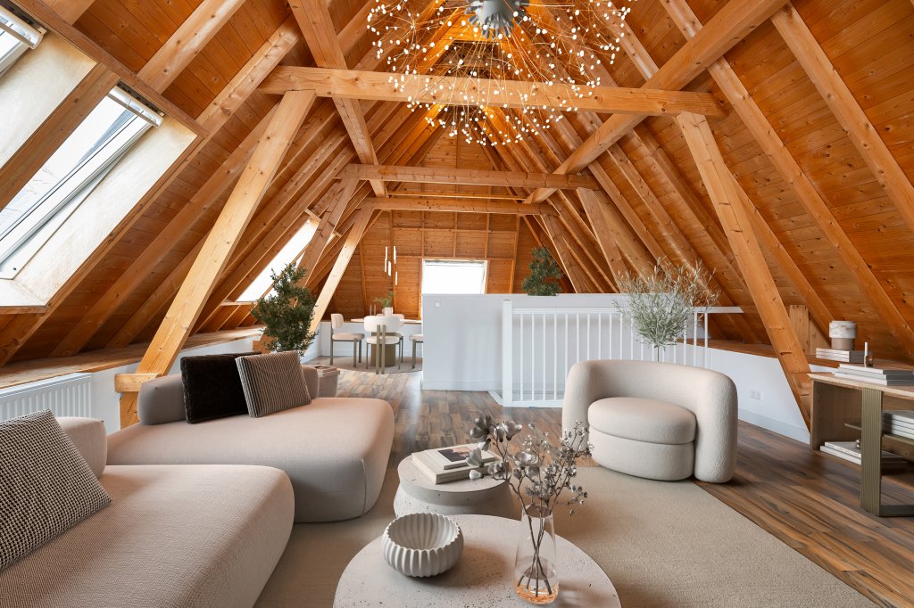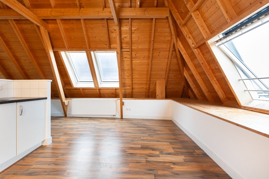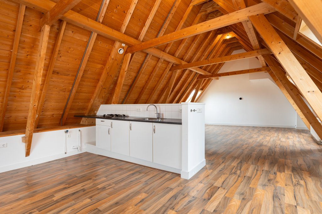 En dan… de trap omhoog. Daar ontvouwt zich het kloppend hart van deze woning. Een royale woonkamer met open keuken en een imposant balkenplafond dat helemaal tot in de nok reikt. De ruimte ademt de beleving van een loft. Dakramen laten het daglicht royaal binnenstromen en vanuit één raam heb je een prachtig uitzicht op de skyline van Kampen. Een uitzicht waar je nooit op uitgekeken raakt. De ruimte leent zich bovendien perfect voor lange avonden tafelen en borrelen met familie en vrienden – een plek waar herinneringen gemaakt worden.