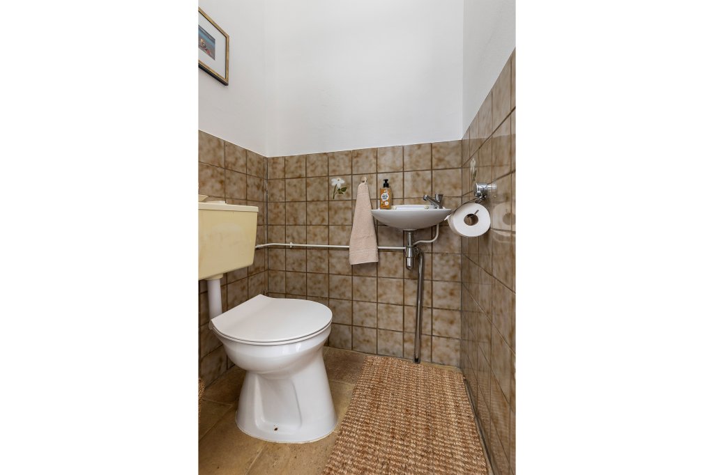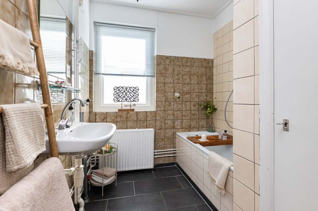 Op de eerste verdieping bevindt zich tevens de nette badkamer, voorzien van een ligbad met douche, een wastafel en aansluitingen voor de wasmachine. Het separate toilet maakt het dagelijks gebruik extra comfortabel.