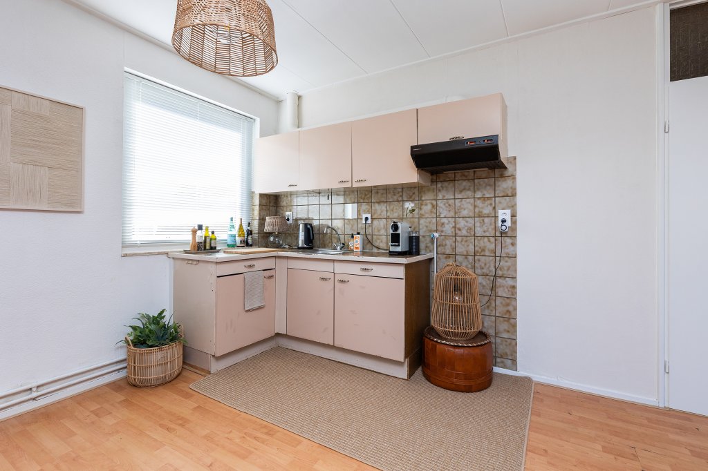 De woning zelf voelt verrassend licht en ruim aan. De woonkamer, met ramen aan drie zijden, zorgt op elk moment van de dag voor een prettige sfeer en staat in open verbinding met de keuken. Vanuit hier loop je zo de loggia op: een heerlijke, beschutte plek waar je al vroeg in het jaar buiten kunt zitten en in alle privacy kunt genieten van een kop koffie of een goed glas wijn.