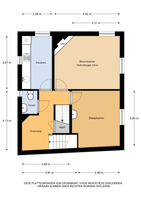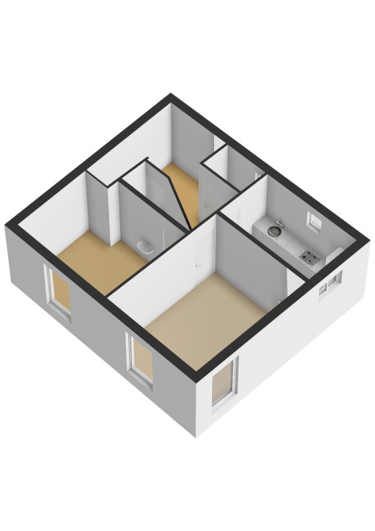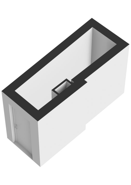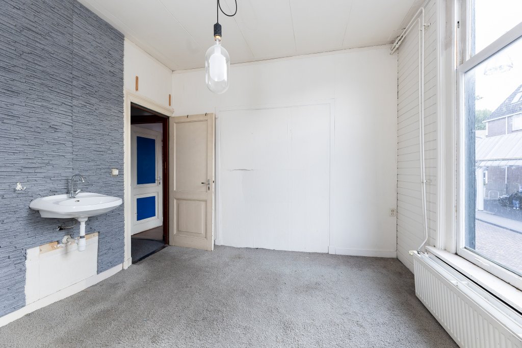 Hier bevinden zich nu een woonkamer, een gesloten keuken en een ruime overloop met trapkast en toilet. Met een slimme indeling kun je hier eenvoudig een royale woonkamer met open keuken realiseren – ideaal voor wie houdt van licht en ruimte.