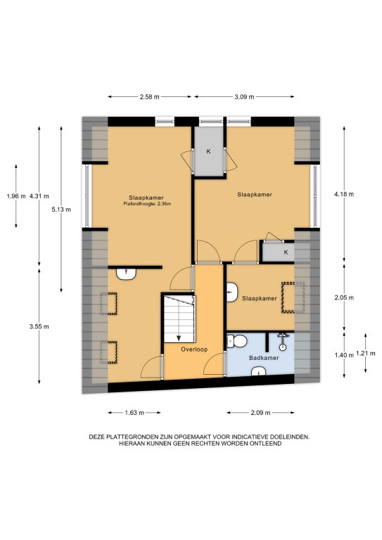 Op deze verdieping vind je drie slaapkamers, een ruime overloop en de badkamer. Daarnaast biedt deze etage de mogelijkheid om een prachtige loggia te creëren, zodat je alsnog over een heerlijk buitenplekje beschikt in de binnenstad.
