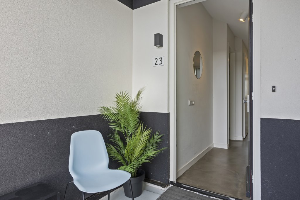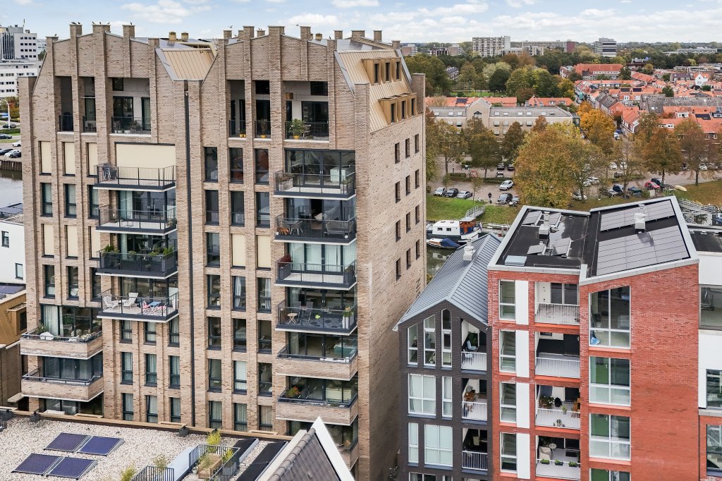 In 2019 verrees aan de Friesewal een bijzonder gebouw: De Hofdames. Stoer in uitstraling, een knipoog naar het industriële verleden, maar met het comfort van nu. Luxe, strak en duurzaam. Hier vind je 19 stadsappartementen – en nu kis er één te koop dat er letterlijk met kop en schouders bovenuit steekt: het penthouse.