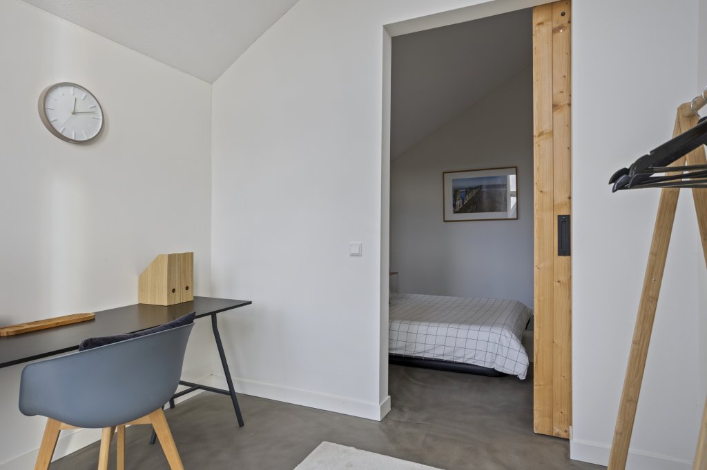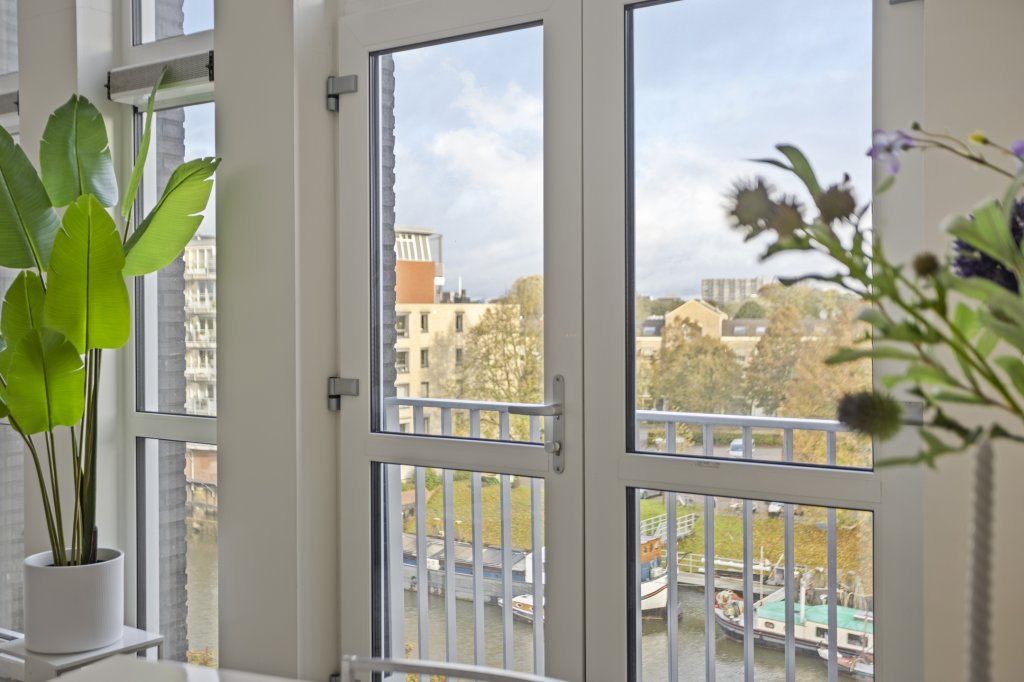 Bovenin, op de vierde verdieping, ervaar je ruimte als nergens anders. De hoge nok zorgt voor lucht en licht, terwijl de vele raampartijen je trakteren op een uitzicht waar je elke dag opnieuw blij van wordt.