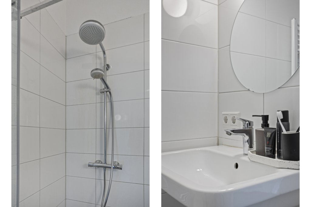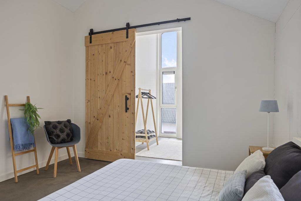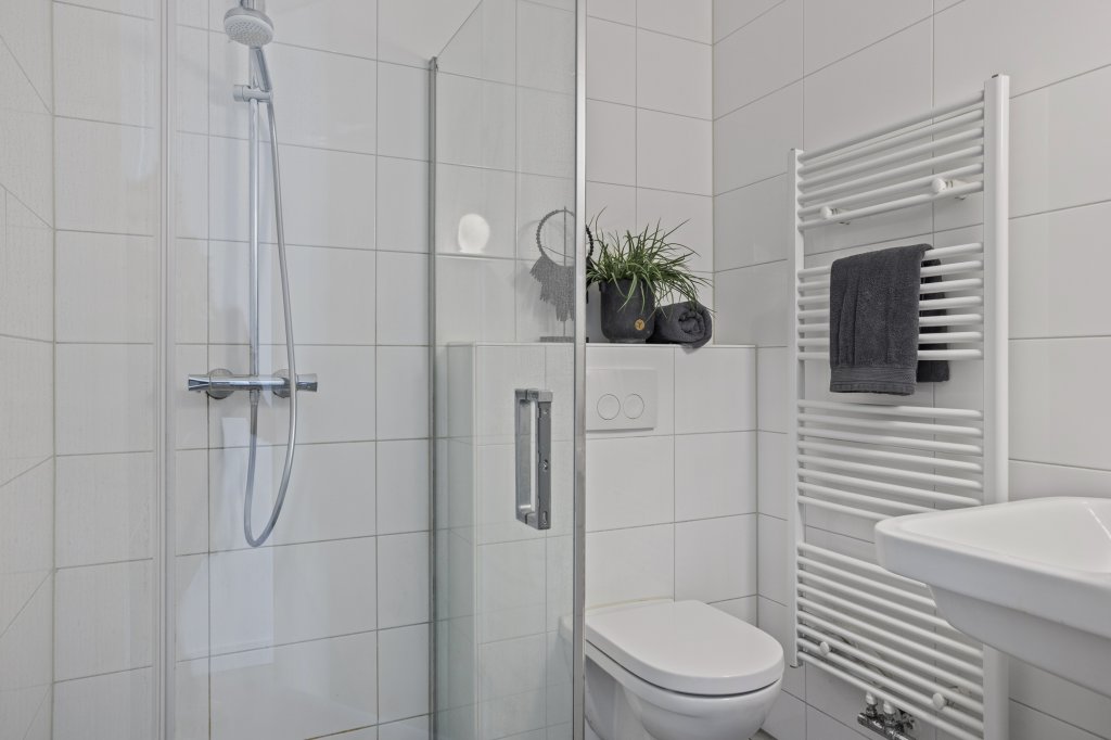 Via de hal bereik je de overige vertrekken. De badkamer is modern en stijlvol, voorzien van zwevend toilet, wastafelmeubel, douchecabine en designradiator. De royale master bedroom biedt via een eigentijdse deur toegang tot een tweede kamer: perfect als werkplek, logeerkamer of royale walk-in closet.