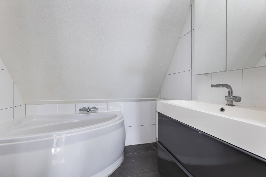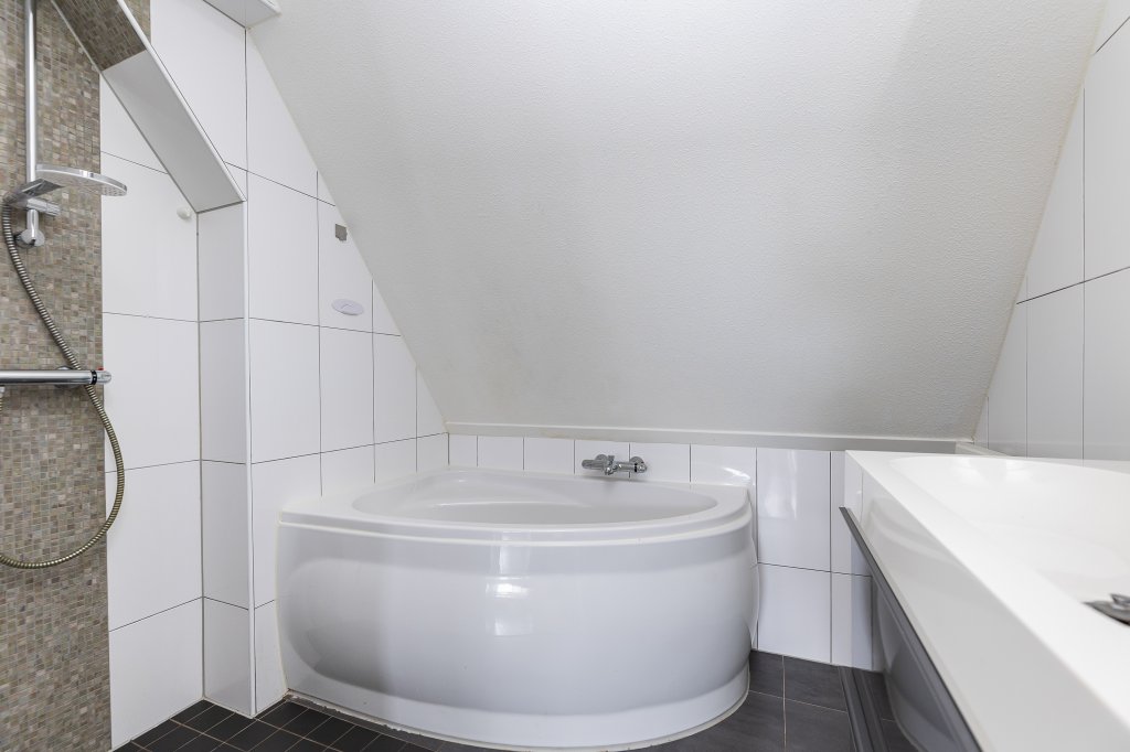 Op de eerste verdieping vind je drie slaapkamers die je flexibel kunt indelen. Slaapkamer, werkkamer of inloopkast — alles past. De badkamer is compleet en comfortabel, met zowel een douche als een ligbad en een wastafelmeubel. Een plek waar je ’s ochtends snel opstart en ’s avonds juist even tot rust komt.