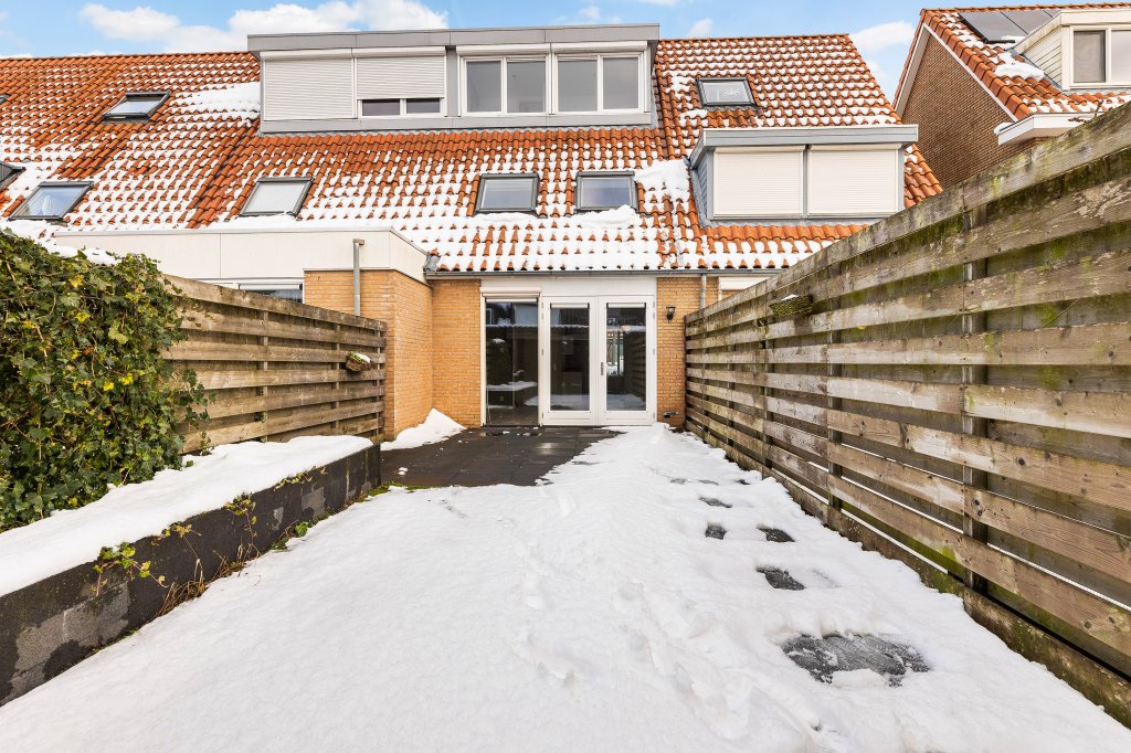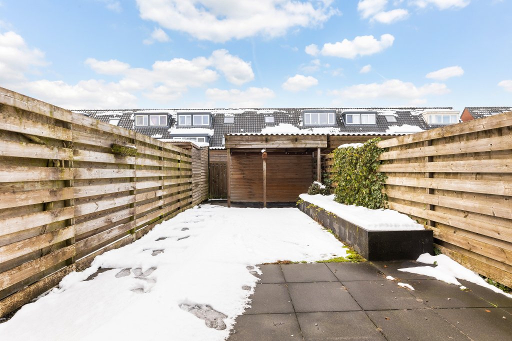 Ook buiten zit het goed. De diepe achtertuin op het zuidwesten is verzorgd aangelegd met een border en beschikt over een houten schuurtje met veranda en een achterom. Een praktische én sfeervolle plek, of je nu wilt klussen, opbergen of gewoon ontspannen met een drankje in de avondzon.
