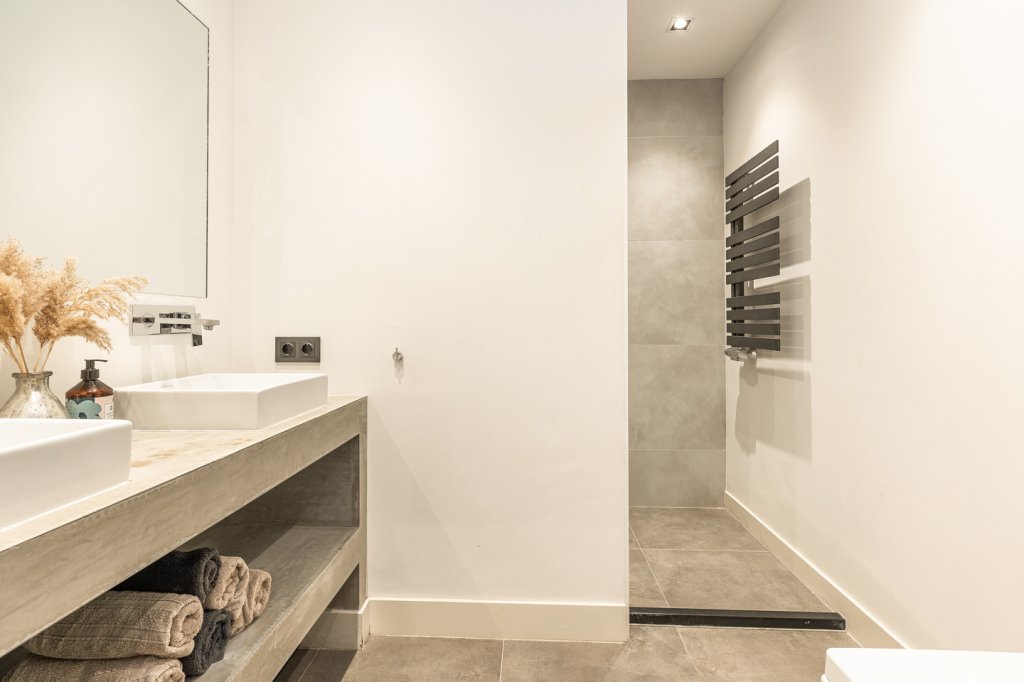 Overloop, riante master bedroom met veel lichtinval door de dakkapel en fraaie shutters. Tweede slaap/werkkamer met wederom fraaie shutters. Moderne, luxe badkamer uitgerust met dubbel wastafelmeubel, inloopdouche en designradiator.