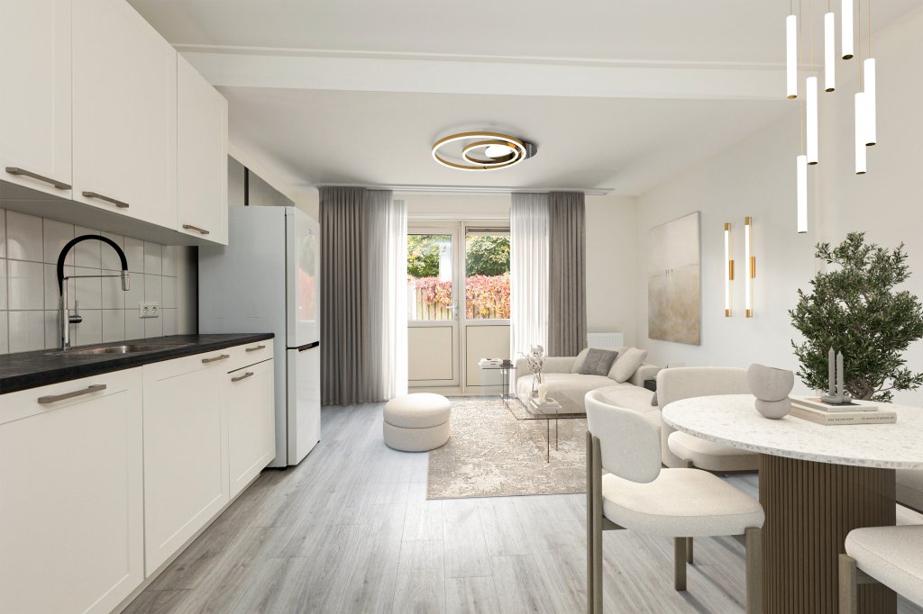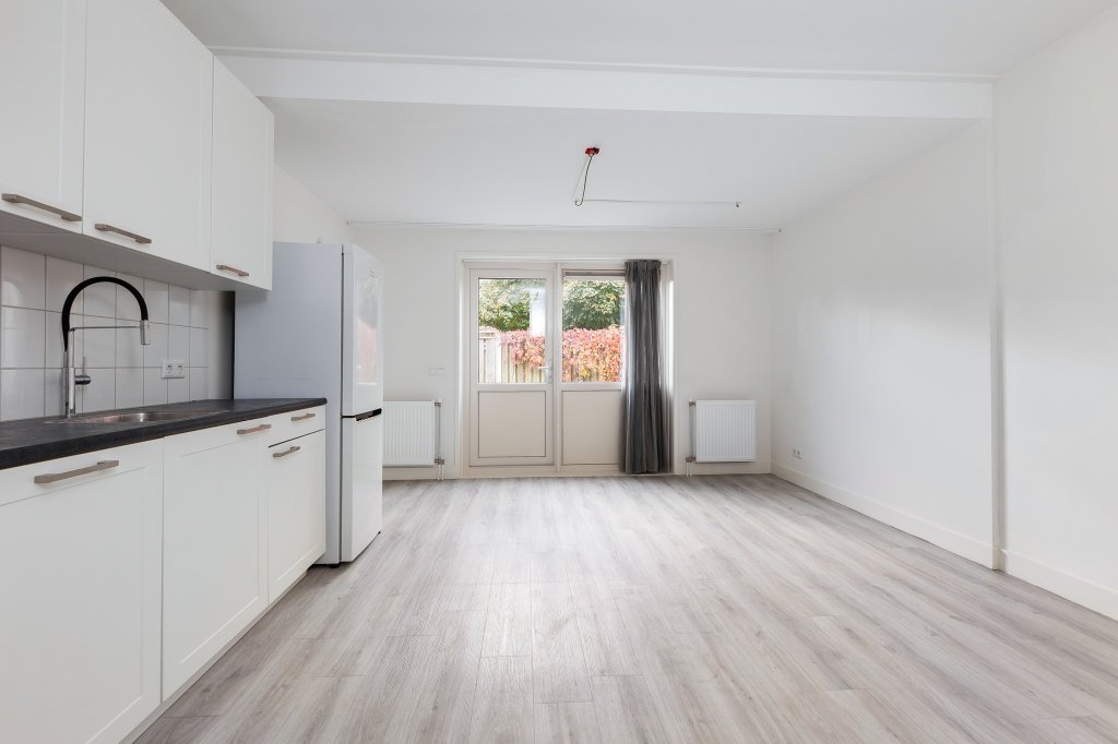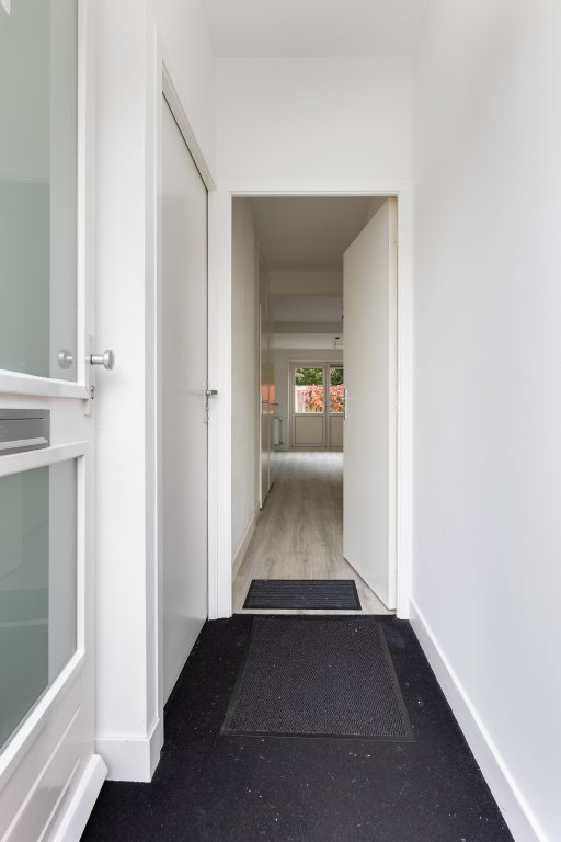 De woning zelf is in 2016 gerealiseerd. Zodra je via de gezamenlijke entree binnenstapt, kom je na je eigen voordeur in de hal die toegang geeft tot alle vertrekken. De woonkamer voelt licht en gezellig aan en vormt samen met de moderne keuken het hart van de woning. De keuken is uitgerust met een inductiekookplaat, afzuigkap, vaatwasser en een losse koel-vriescombinatie. Vanuit de woonkamer loop je zo de tuin in, waar je in de middag- en avondzon heerlijk kunt ontspannen.
